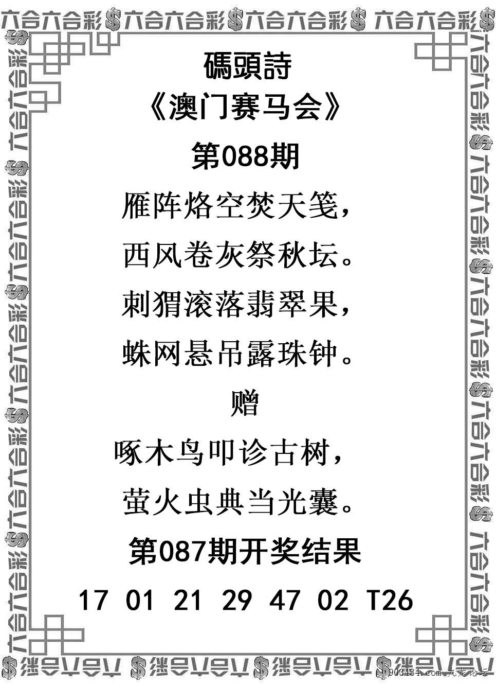 088期:澳门码头诗解开?00